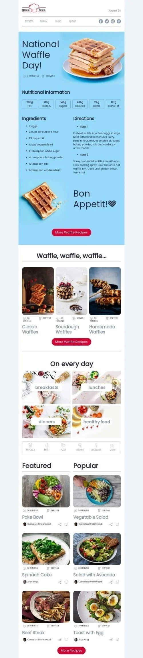 Plantilla de correo electrónico «Comparte tu receta de gofres» de Día Nacional del Waffle para la industria de Gastronomía