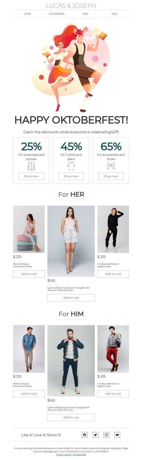 Plantilla de correo electrónico «Atrapa los descuentos» de Oktoberfest para la industria de Moda