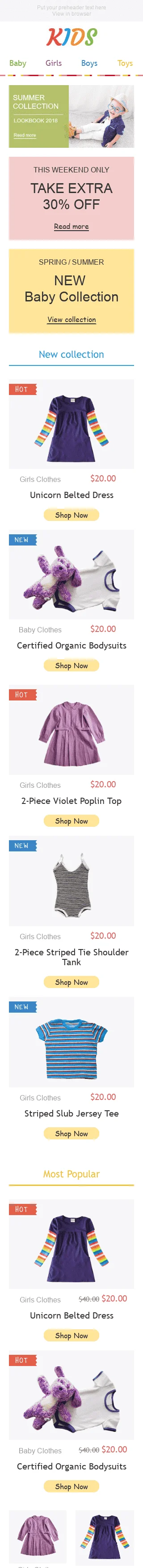 Plantilla de correo electrónico "Ropa muy bonita" de Promoción para la industria de Productos para niños
