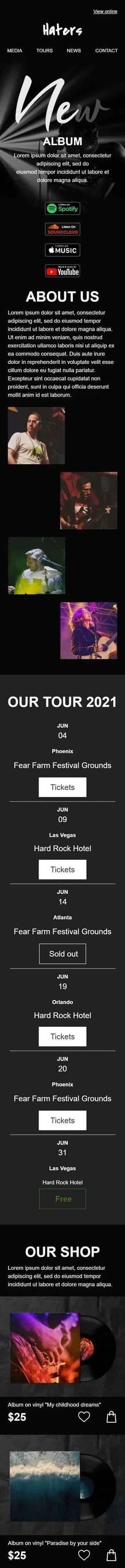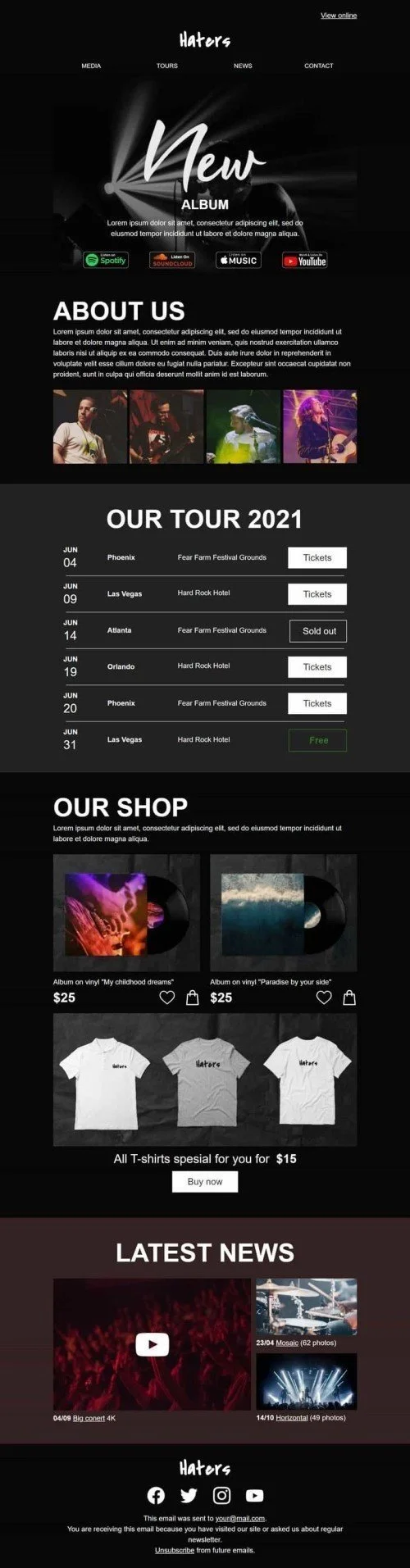 Plantilla de correo electrónico «Nuevo album» de Promoción para la industria de Música