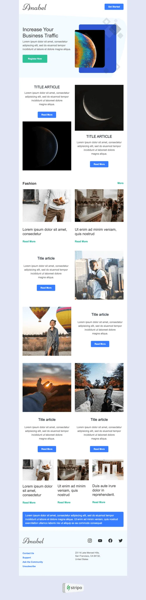Plantilla de correo electrónico «Información corta» de Promoción para la industria de Publicaciones y blogs