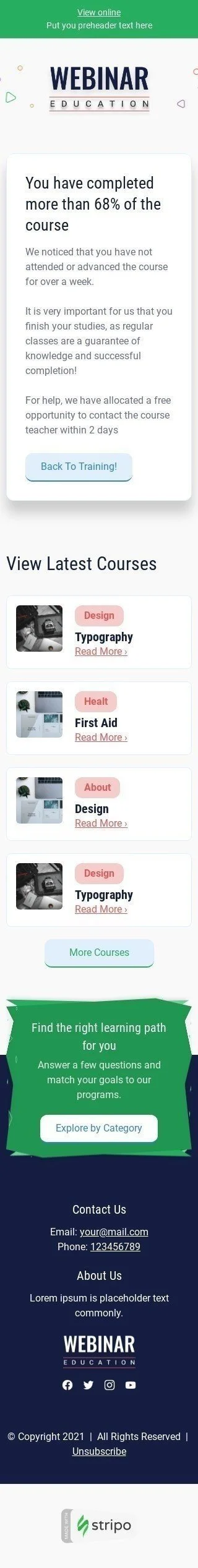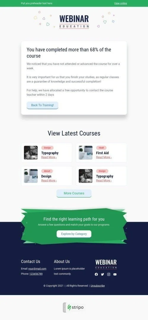 ¿Buscas una forma de reactivar la fidelidad de los estudiantes y mantenerlos motivados en su trayectoria educativa? No busque más; ¡la plantilla de correo electrónico de retención y reactivación "Promesa de finalización" está aquí para ayudarte! Nuestra plantilla de correo electrónico especial puede ser utilizada por educadores, instituciones educativas o cualquier organización que eduque a estudiantes.