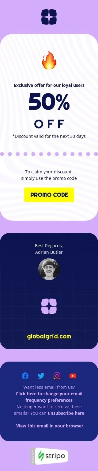 La "Oferta Exclusiva para Nuestros Usuarios Leales" SaaS email template es la manera perfecta de recompensar y mostrar aprecio a nuestros clientes dedicados en la industria del software y la tecnología. Este template diseñado profesionalmente cuenta con contenido personalizable y gráficos visualmente atractivos para involucrar a nuestra base de usuarios leales. Con un claro call-to-action, este email destaca beneficios exclusivos, descuentos o nuevas características disponibles solo para nuestros clientes más valiosos. ¡No te pierdas esta oportunidad de fortalecer la lealtad del cliente, aumentar engagement y impulsar ventas con nuestro impactante y personalizado SaaS email template! ¡Ofrece a nuestros usuarios leales una oferta exclusiva que no podrán resistir!