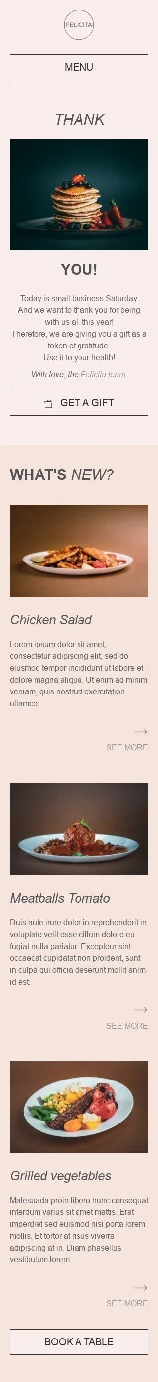 Plantilla de correo electrónico «Palabras de agradecimiento» de Sábado de pequeñas empresas para la industria de Restaurantes