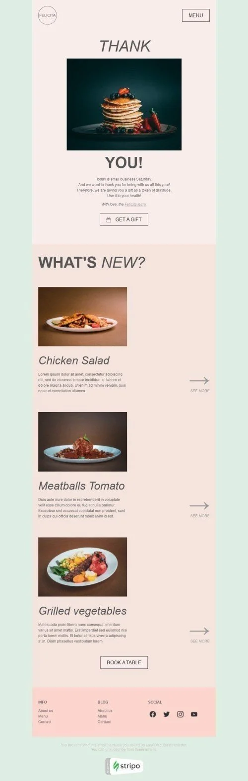 Han sido años difíciles para el sector de la restauración. Pero a pesar de todo, tu negocio ha perseverado. La plantilla de correo electrónico "Palabras de agradecimiento" para el sábado de la pequeña empresa es la oportunidad perfecta para mostrar a tus clientes cuánto aprecias su continuo apoyo. Esta plantilla de correo electrónico de los gurús del marketing de restaurantes es la forma perfecta de mostrar tu gratitud. Es fácil de personalizar con tu propio mensaje y logotipo, y está diseñada para destacar en la bandeja de entrada de los clientes. Demuestra a tus clientes lo mucho que aprecia su negocio con esta plantilla de correo electrónico "Palabras de gratitud" para el Small Business Saturday. ¡Pide la suya hoy mismo!