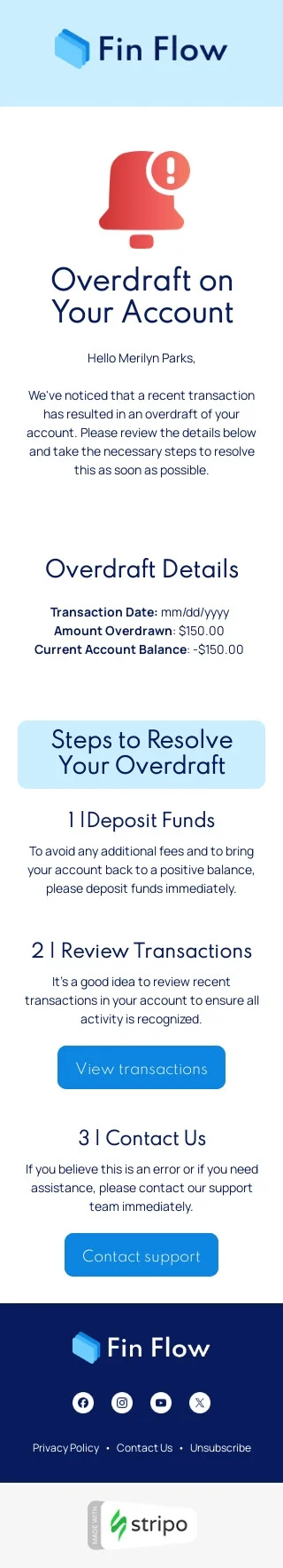 Plantilla de correo electrónico «Alerta de fondos insuficientes» de desencadenar para la industria de FinTech