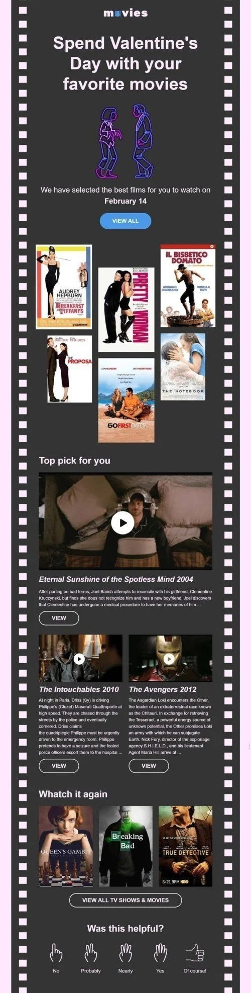Plantilla de correo electrónico «Películas románticas» de Día de San Valentín para la industria de Películas