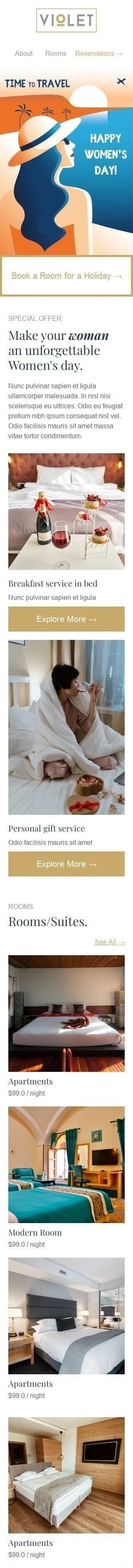 Plantilla de correo electrónico «Día de la mujer inolvidable» de Día de la Mujer para la industria de Hoteles