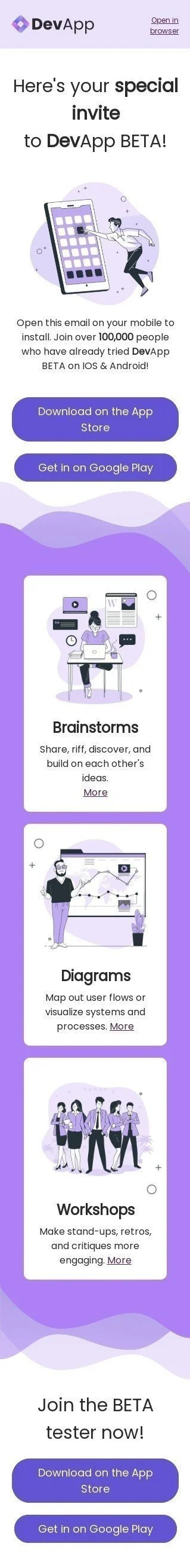 Il est temps d'inviter vos meilleurs clients et partenaires à votre prochain grand lancement ! Faites en sorte de vous démarquer avec ce magnifique modèle d'e-mail "Invitation spéciale" pour le secteur des logiciels et de la technologie. Avec un design moderne et élégant, il est parfait pour annoncer de nouveaux produits, des mises à jour ou des événements. De plus, il est totalement personnalisable, ce qui vous permet d'ajouter facilement votre propre image de marque et vos propres images. Alors allez-y et faites une bonne impression — envoyez vos meilleures invitations avec ce modèle d'e-mail !