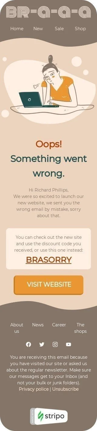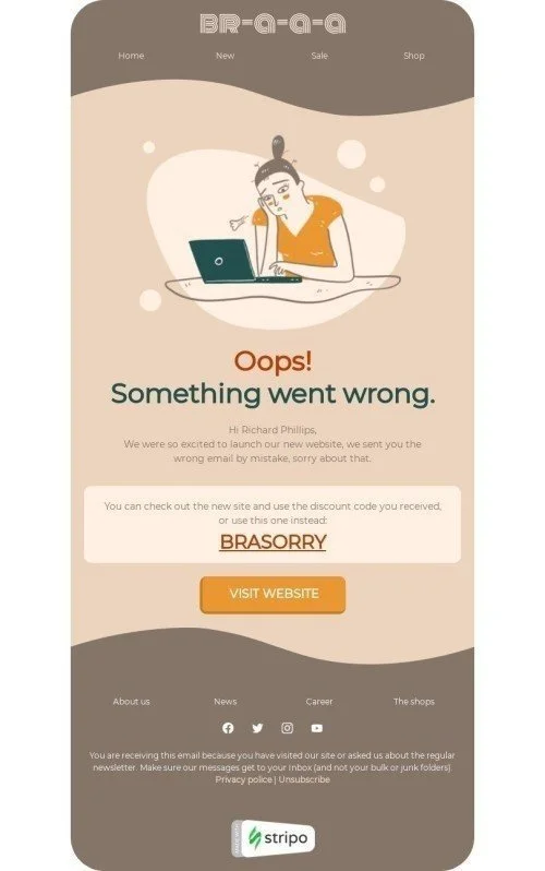 Modèle de courrier électronique Excuses «Quelque chose s'est mal passé» pour le secteur Mode