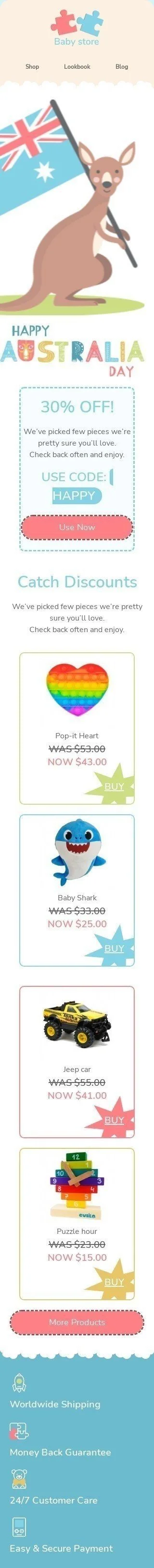 Modèle de courrier électronique Jour de l'Australie «Kangourou drôle» pour le secteur Mode