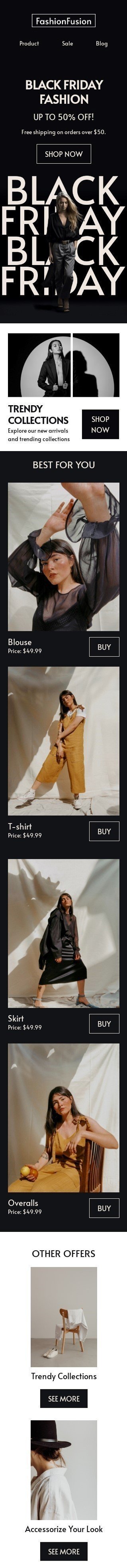 Modèle de courrier électronique Black Friday «Offres mode du Black Friday» pour le secteur mode