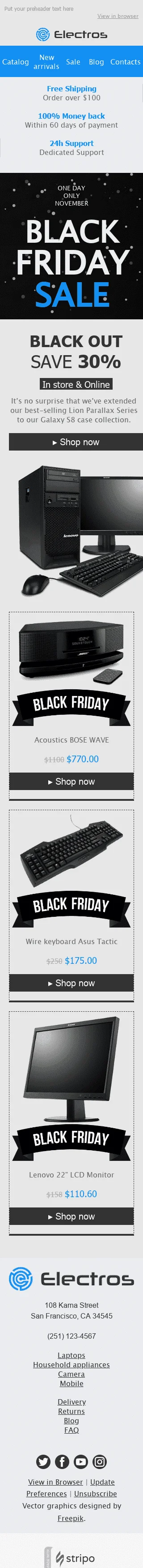 Modèle de courrier électronique Black Friday "Folie des prix" pour le secteur Gadgets