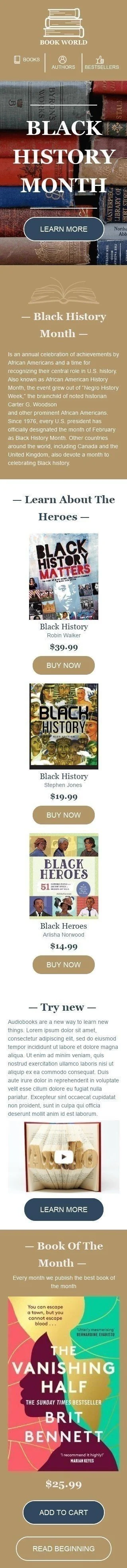 Modèle de courrier électronique Le mois de l'histoire noire «Héros noirs» pour le secteur Livres & Cadeaux & Papeteries