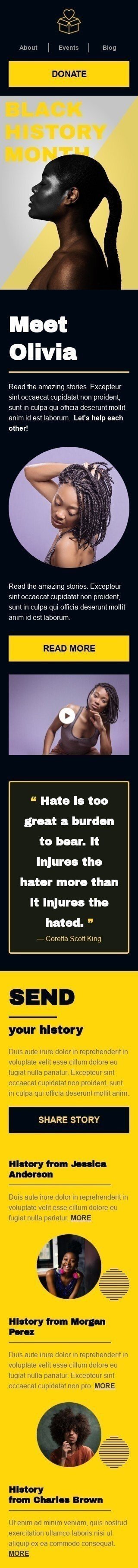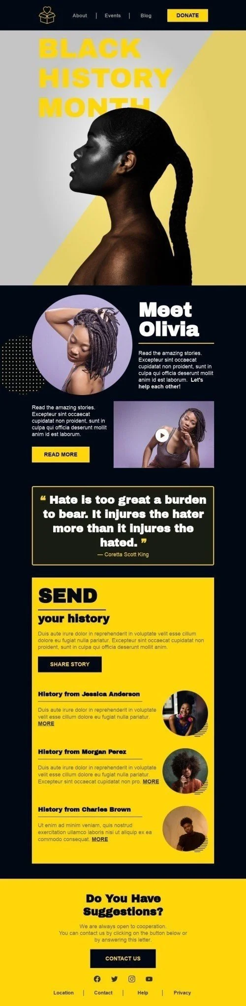 Modèle de courrier électronique Le mois de l'histoire noire «Rencontrez Olivia» pour le secteur Association à but non lucratif et caritative
