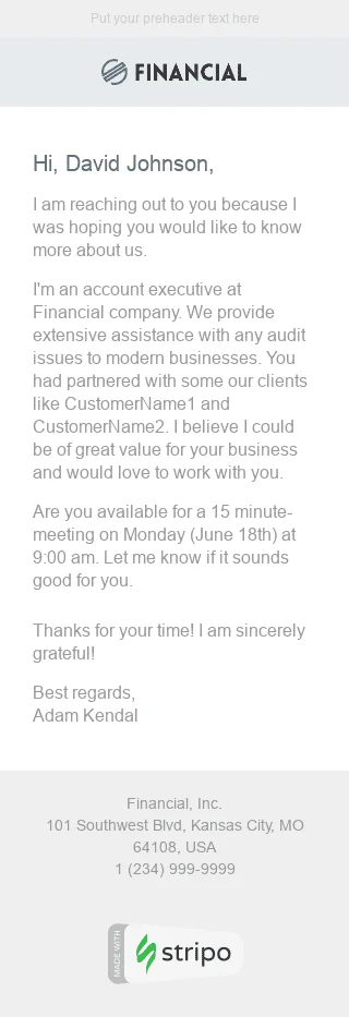 Modèle de courrier électronique Cold Emails "Nouveau partenaire" pour le secteur Finance
