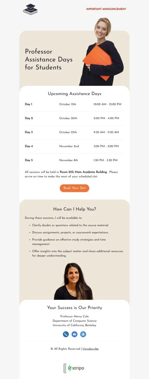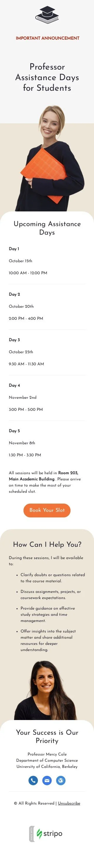 Modèle de courrier électronique confirmation «Journées d'assistance» pour le secteur courriel du professeur
