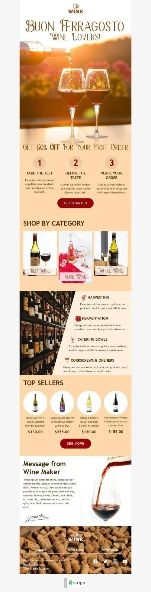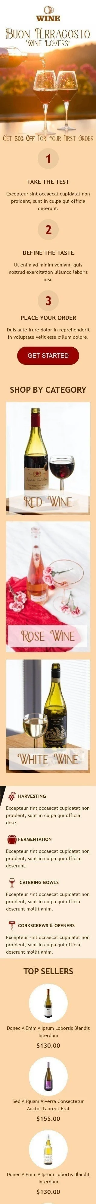 Modèle de courrier électronique Ferragosto «Message du vigneron» pour le secteur Boissons