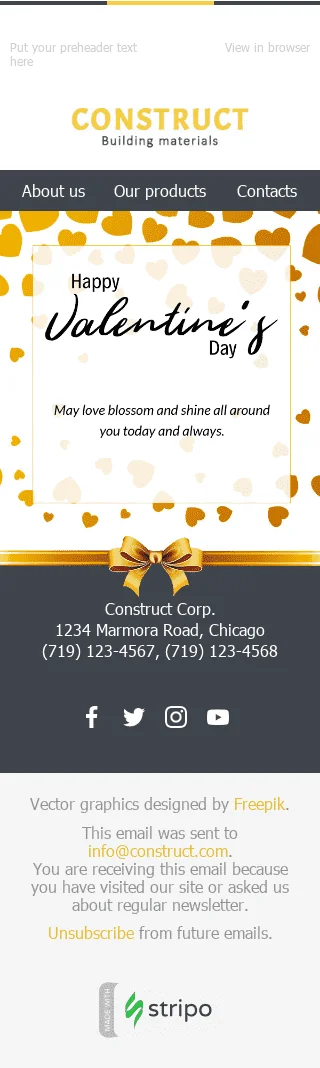 Modèle de courrier électronique Saint Valentin "Salutation brillante" pour le secteur Construction