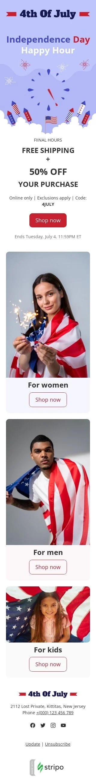 Modèle de courrier électronique Jour de Independence «Dernières heures» pour le secteur mode