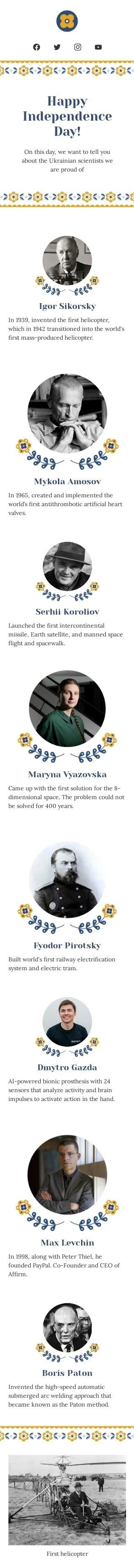 Modèle de courrier électronique Jour de l'Indépendance Ukraine «Scientifiques ukrainiens» pour le secteur association à but non lucratif et caritative