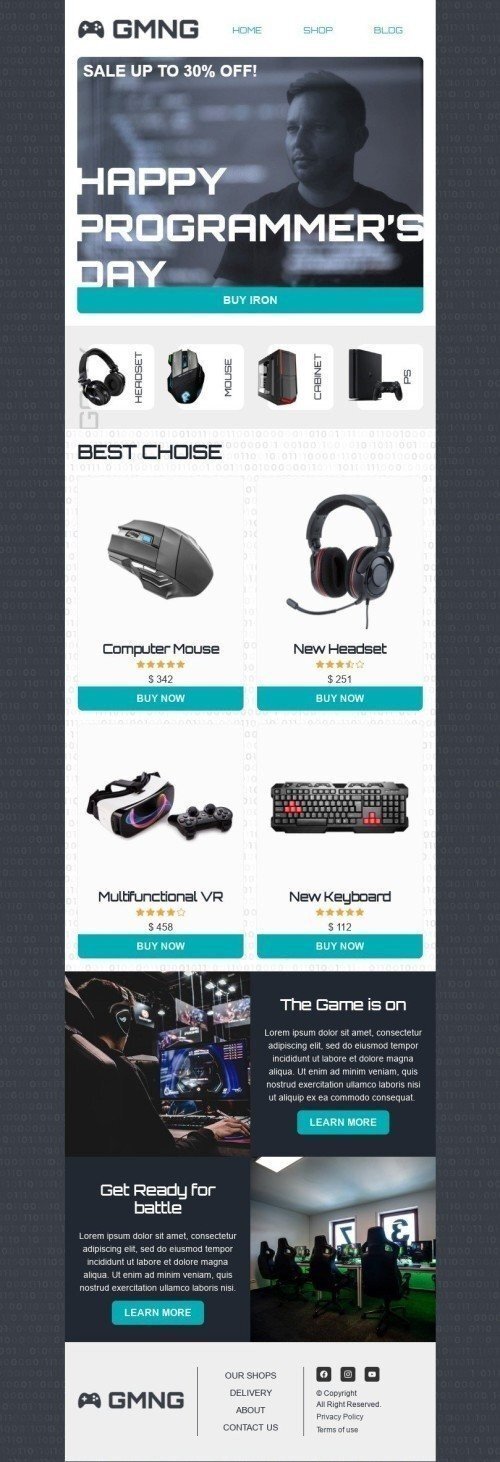 Modèle de courrier électronique Journée internationale des programmeurs «Préparez-vous pour la bataille» pour le secteur Gadgets