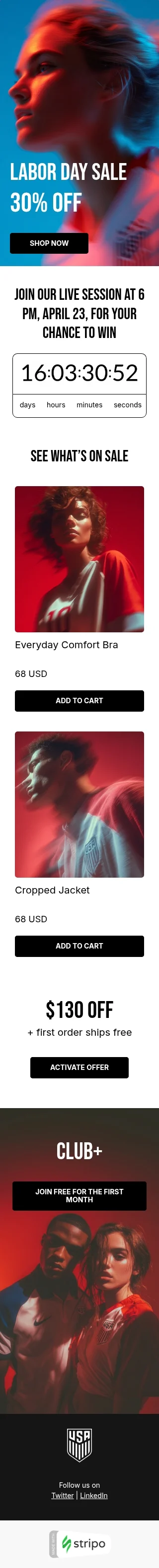 Modèle de courrier électronique Fête du travail «Célébrez votre dur labeur» pour le secteur mode