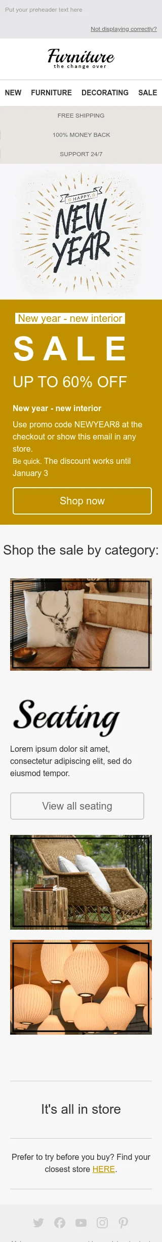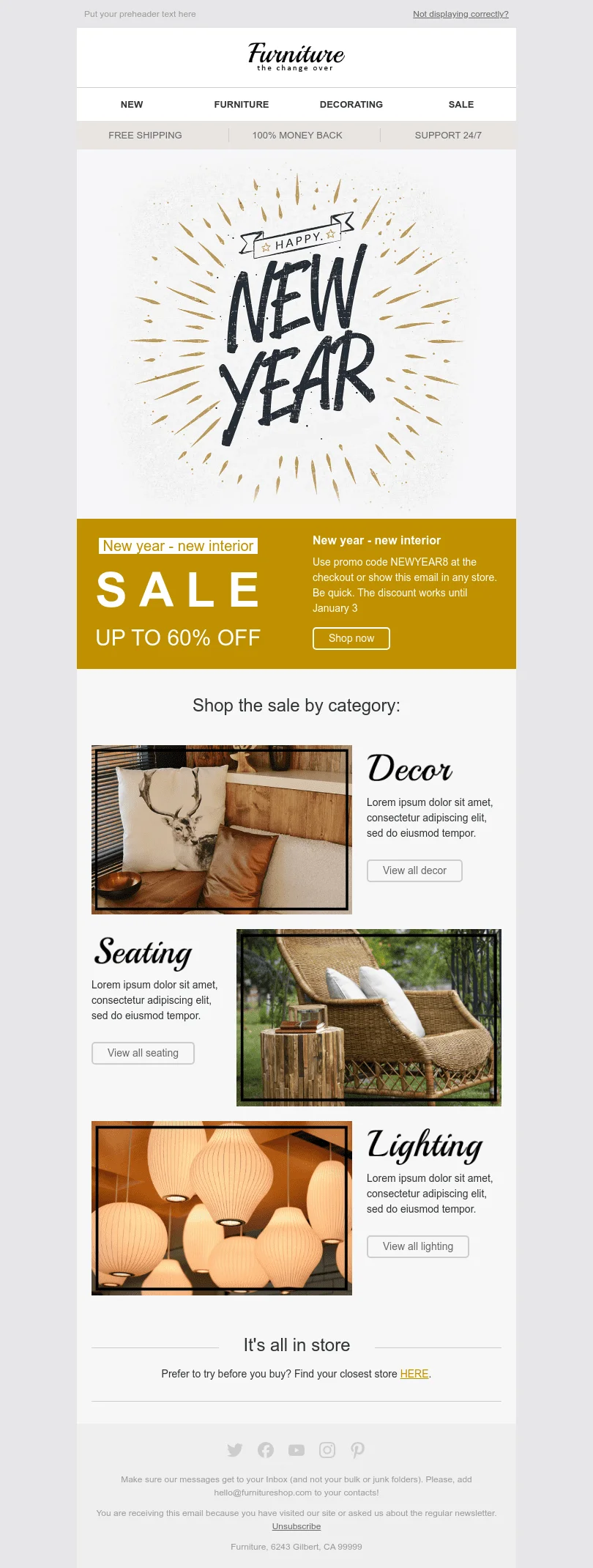 Modèle de courrier électronique Nouvel An "Intérieur élégant" pour le secteur Mobiliers, Intérieur & DIY