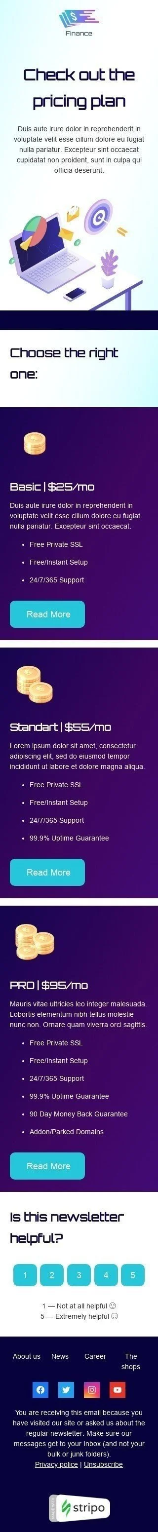 Modèle de courrier électronique Liste de prix «Liste de prix des finances» pour le secteur Finance