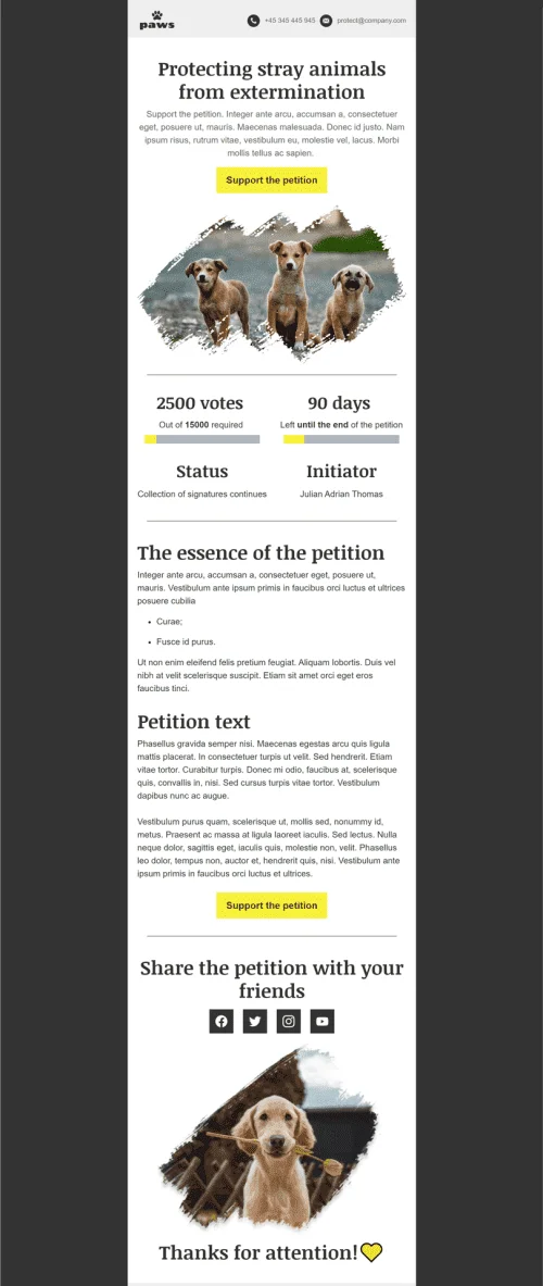 Modèle de courrier électronique Promo «Protéger les animaux errants» pour le secteur Association à but non lucratif et caritative
