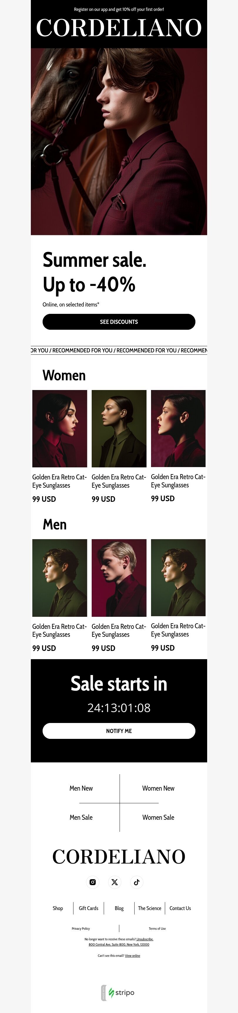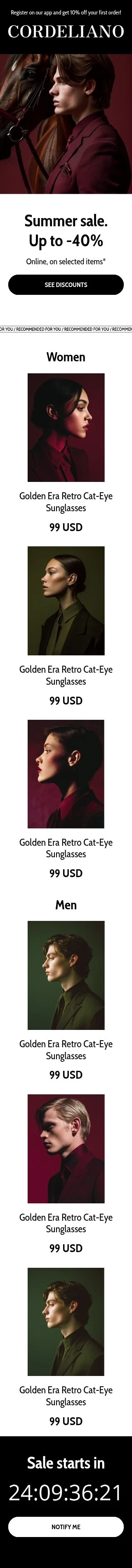 Modèle de courrier électronique promo «Recommandé pour vous» pour le secteur mode