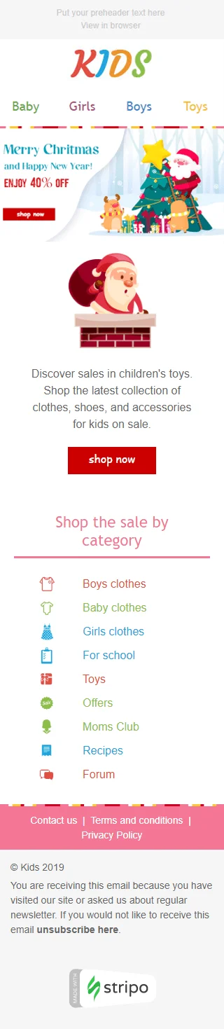 Modèle de courrier électronique Noël «Bébé sourit» pour le secteur Produits pour Enfants