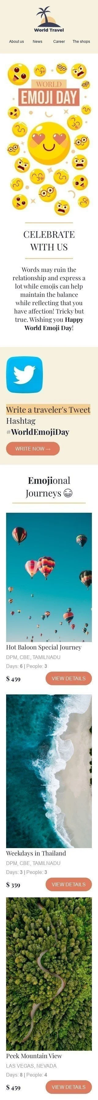 Modèle de courrier électronique Journée mondiale des emojis «Rédiger le Tweet d'un voyageur» pour le secteur Tourisme