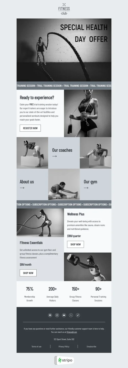 Modèle de courrier électronique Journée mondiale de la santé «Offre Journée de la santé» pour le secteur sports