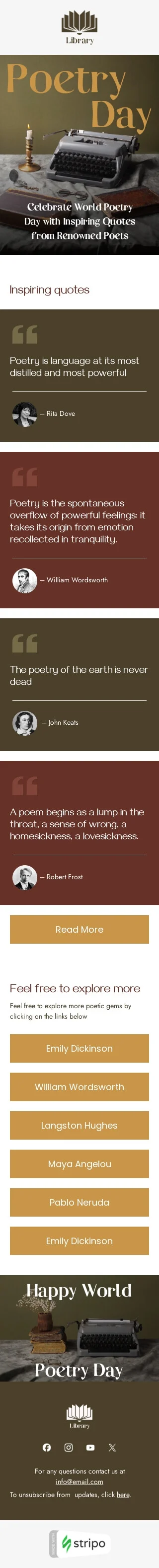 Modèle de courrier électronique Journée mondiale de la poésie «Poètes renommés» pour le secteur livres & cadeaux & papeteries