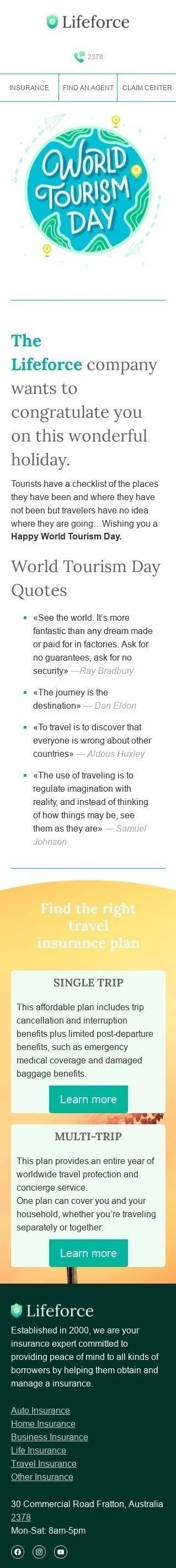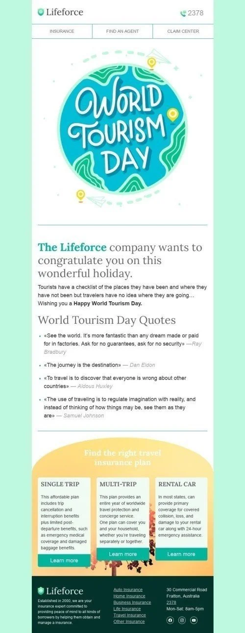 Modèle de courrier électronique Journée mondiale du tourisme «Voir le monde» pour le secteur Assurance