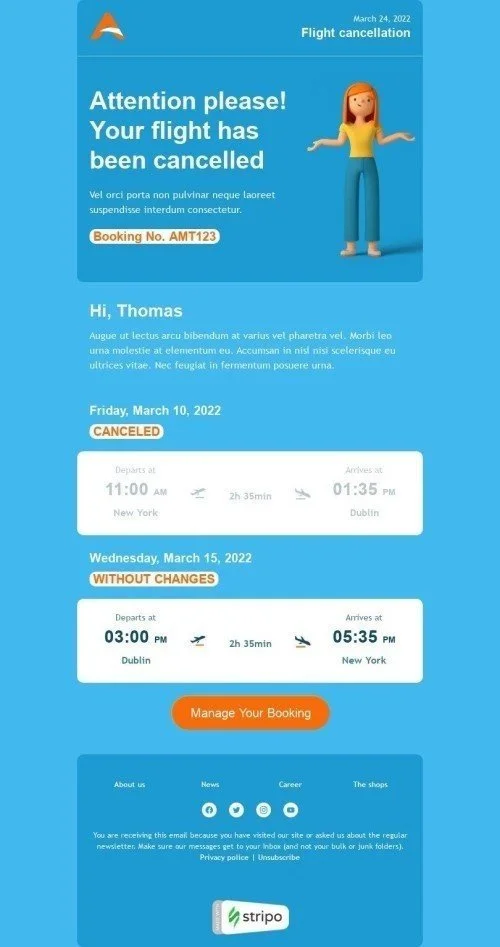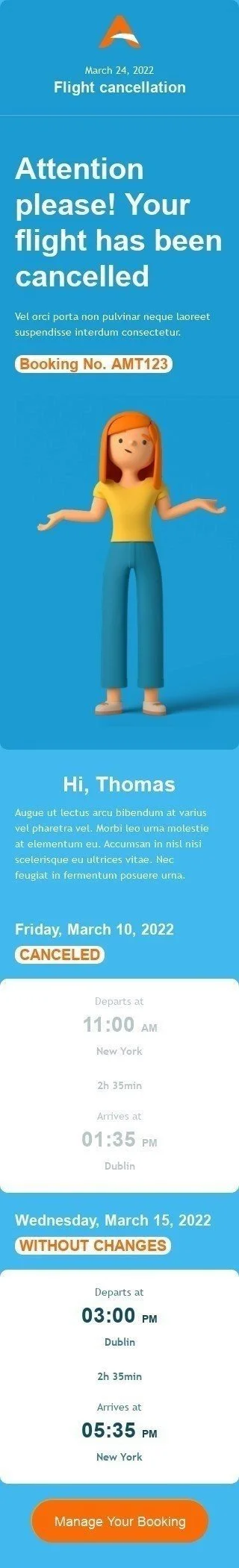 Modello Email Avvisi e notifiche «Cancellazione del volo» per il settore industriale di Compagnia aerea