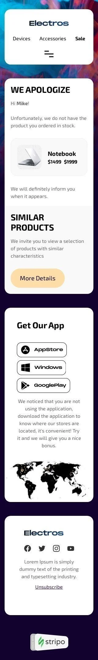 Modello Email Scusa «Nuova alternativa» per il settore industriale di Ecommerce