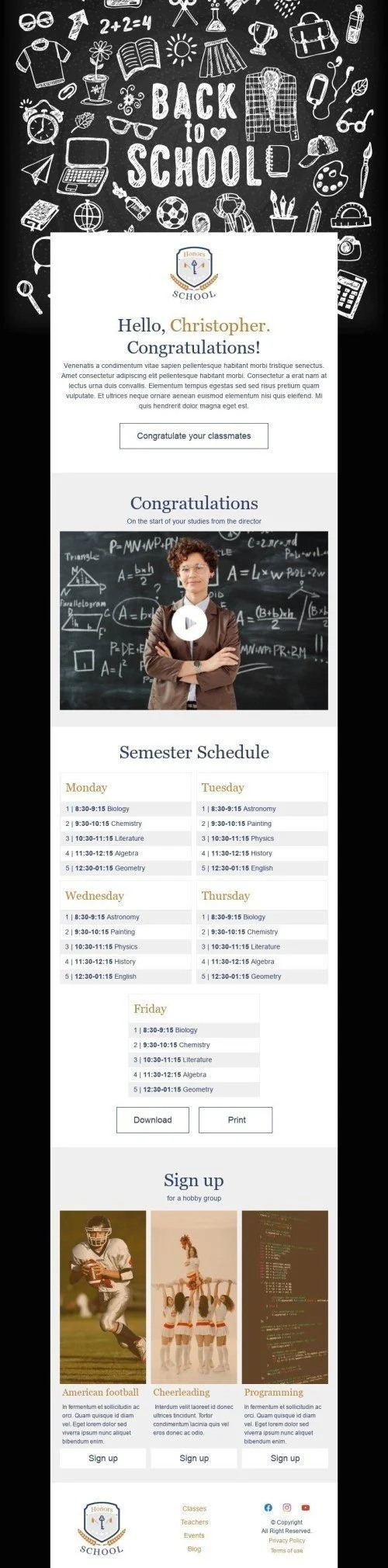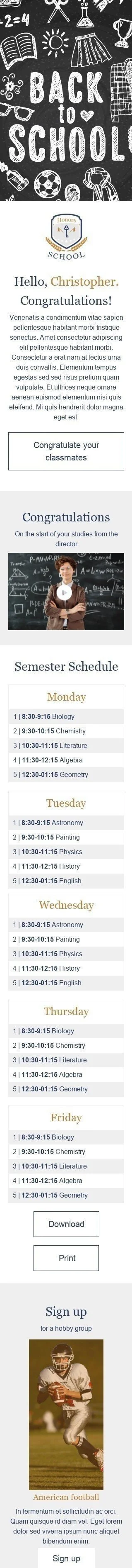 Modello Email Ricomincia la scuola «Scuola di lode» per il settore industriale di Istruzione