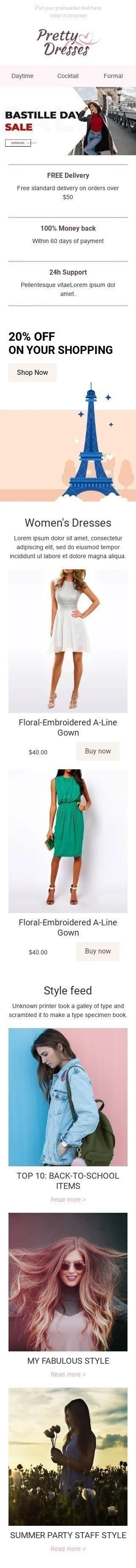 Modello Email Il Giorno della Bastiglia «Sotto i riflettori» per il settore industriale di Moda