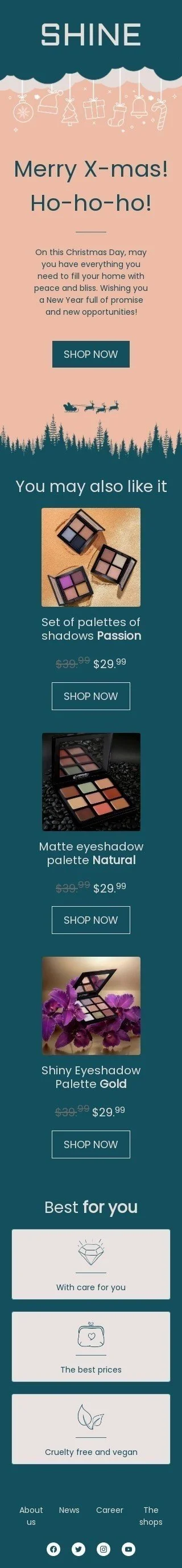 Modello email Natale «Merry X-mas! Ho-ho-ho!» per il settore industriale di bellezza e cura della persona