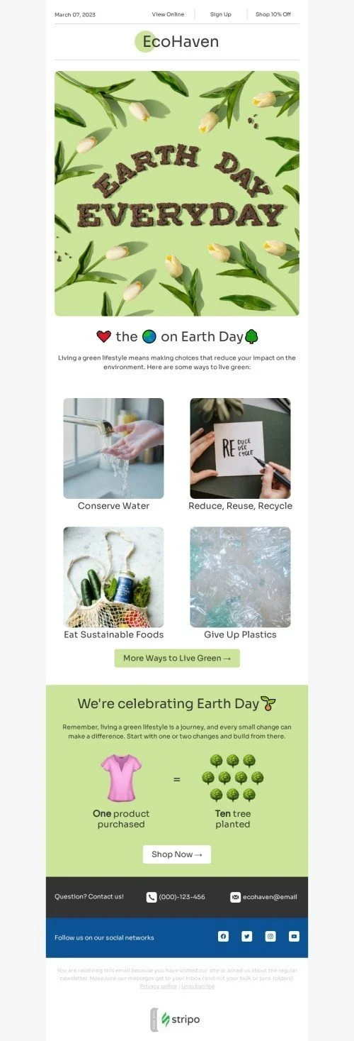 Modello email Giorno della Terra «Giornata della Terra ogni giorno» per il settore industriale di prodotti organici ed ecocompatibili
