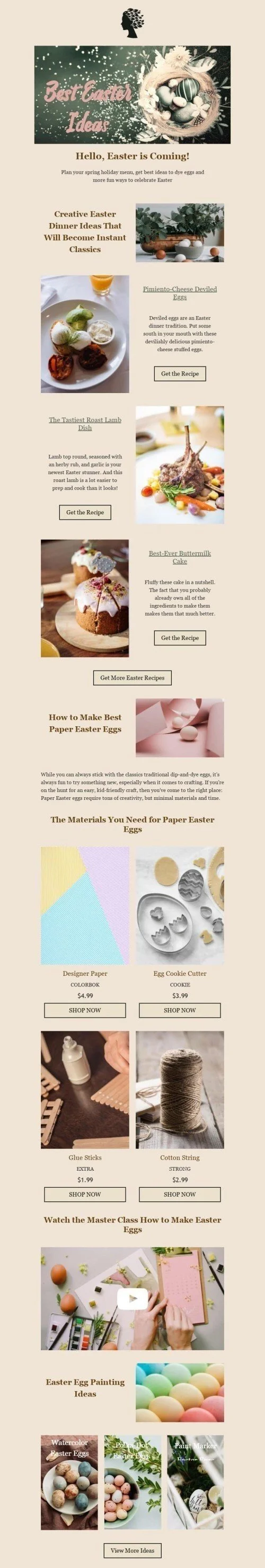 Modello Email Pasqua «Le migliori idee di Pasqua» per il settore industriale di Cibo