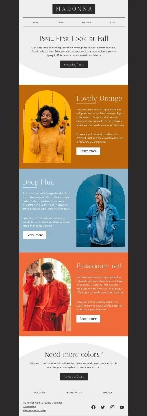 Modello Email Primo giorno d'autunno «Primo sguardo all'autunno» per il settore industriale di Moda