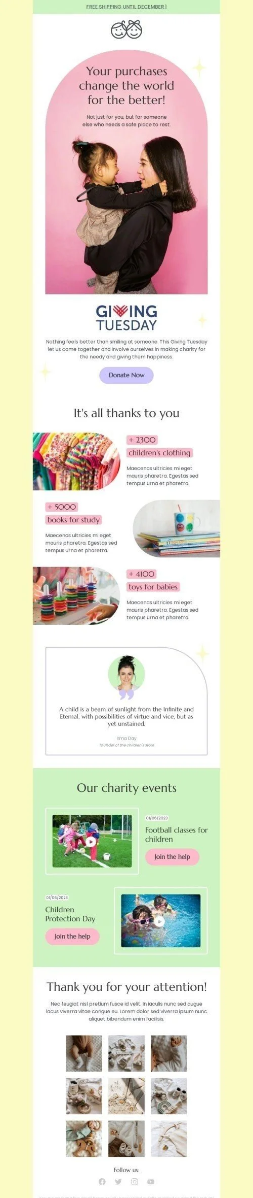 Modello email Dare martedì «I tuoi acquisti cambiano il mondo» per il settore industriale di prodotti per bambini