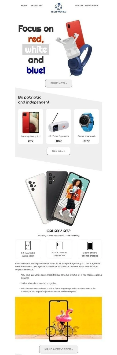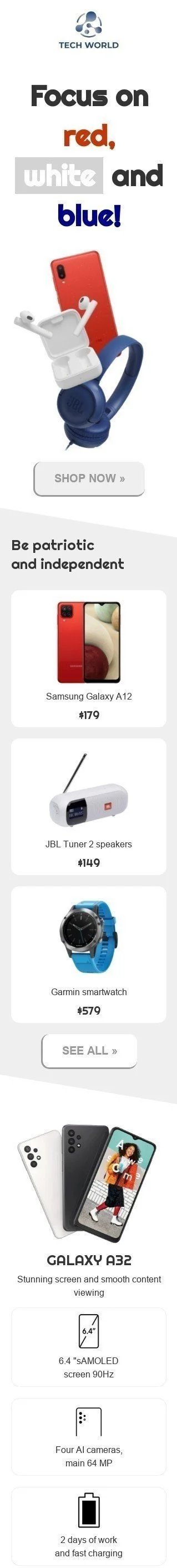 Modello Email Giorno dell’Indipendenza «Concentrati su rosso, bianco e blu» per il settore industriale di Gadget