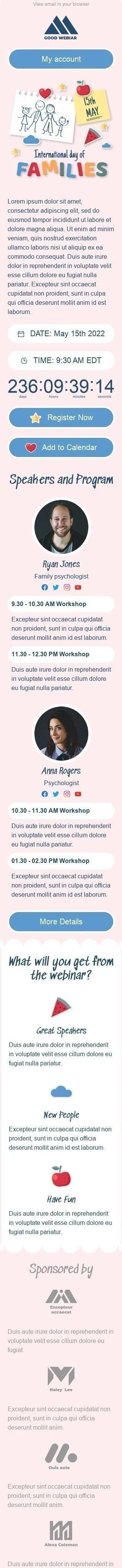 Modello Email Giornata Internazionale delle Famiglie «Psicologo di famiglia» per il settore industriale di Webinar