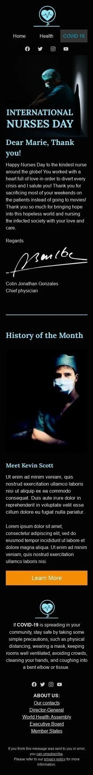 Modello Email Giornata internazionale dell'infermiere «Grazie ai nostri medici» per il settore industriale di Salute e bellezza