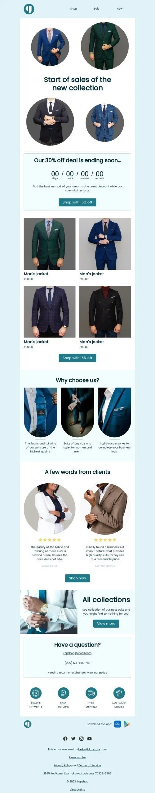 Modello email promo «Inizio delle vendite» per il settore industriale di e-commerce
