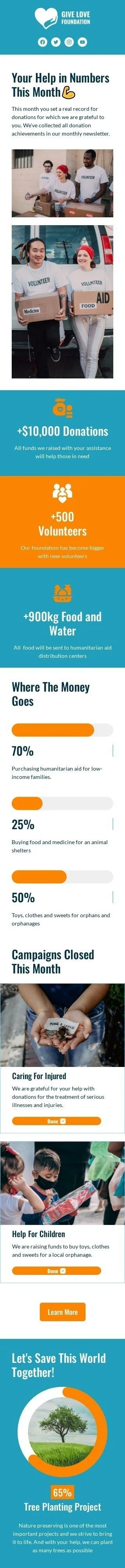 Modello email promo «Email basata su statistiche» per il settore industriale di no profit e beneficenza